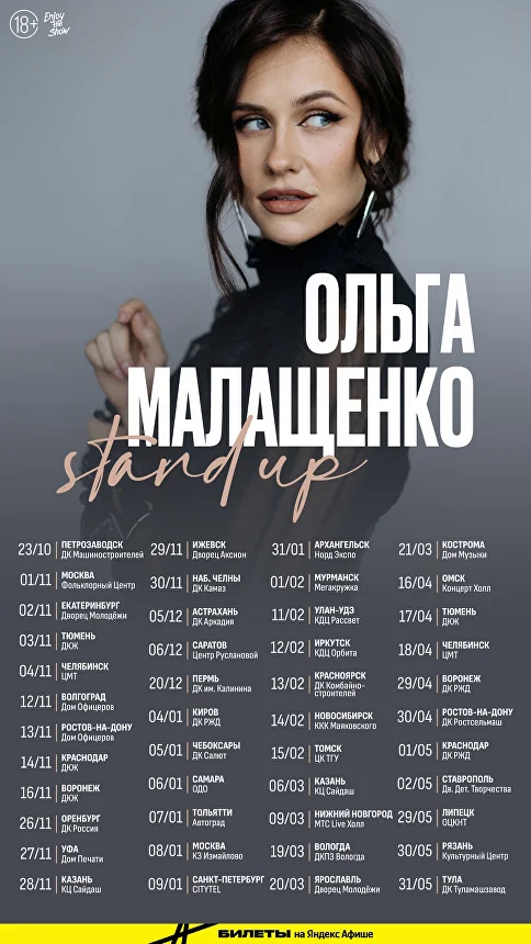 Купить билеты на выступление Ольги Малащенко в «Мега Кружке» города Мурманска онлайн возможно на сайте iCity.life.